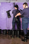 Miss Abigail and Fidelity hose each other down in the dungeon