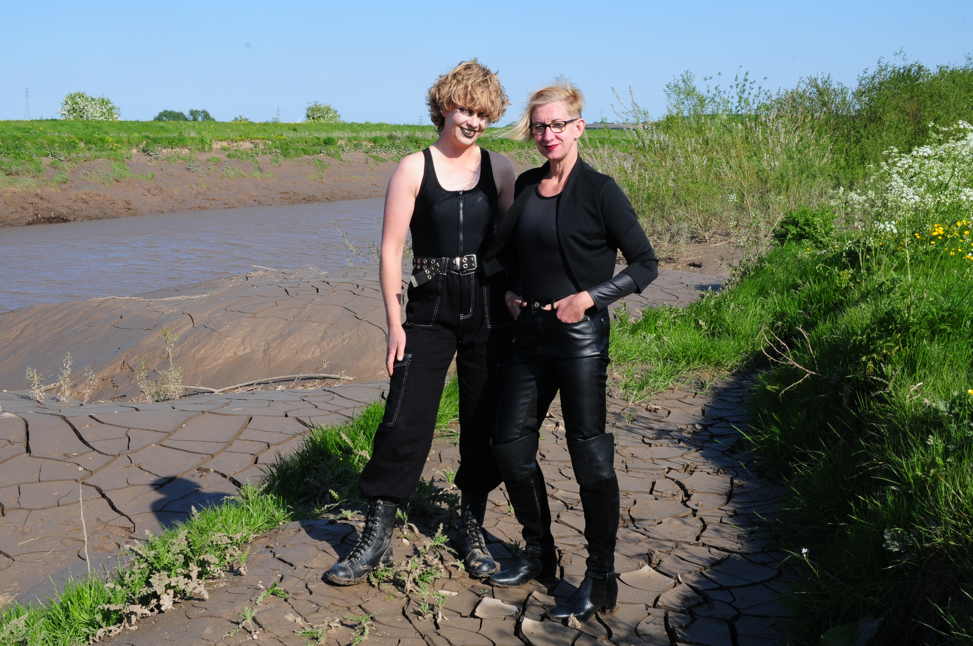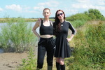 windy day, Aurora and Roxanne, both dressed in Gothic clubwear, meet up
