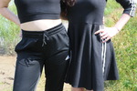 a black crop-top and green wellies, while Honeysuckle wears a black sports