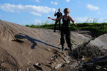 Watch and enjoy as our heroine falls backwards into the mud, coveres