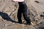 the riverside mudbanks. She sits with s splat, engulfing the seat of her dungarees,