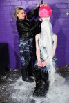 Bonus release for 5th Wednesday in Novemnber, watch as Chastity drenches herself in milk while dressed entirely in black PVC jeans and top. She fills her jeans, and the milk leaks out through the seams, fills and covers her top, and then when she's well saturated Felicity calmly walks into the scene with a pink bucket full of milk and pours it all over Chastity's head in a single big pour.