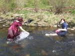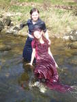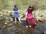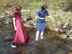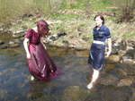 Lady Jasmine and Nurse Wendy-Household have a paddle in the river, and have a great time soaking their clothes, Lady Jasmine in a lovely formal dress which really shines once it is soaked, and th nurse in her trademark blue uniform.