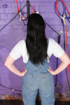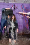 All three girls end up getting the "hose shoved down inside their denims" treatment, and all three get totally drenched. As well as having the hose shoved down their jeans or dungarees front and back, Felicity and Maude wear denim jackets that also get soaked, and all three take turns to play a game where one person sits on the seat, another pours a bucker of water over the sitter, while the pourer is herself being hosed down by the third girl. They swap places constantly and experiment with different ways of soaking each other.