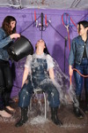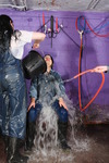 Felicity and Maude have both been caught wearing dry wellies in the house. So Rosemary has the pair of them in the dungeon, dressed in denim, for a suitable punishment, in the form of having the running warm water hose shoved down the back of their jeans. But who will be first to feel the wetness?