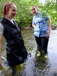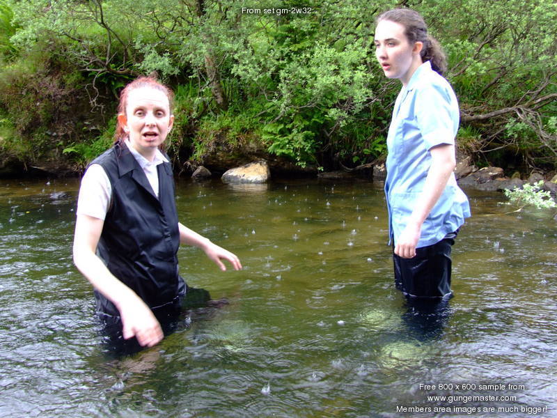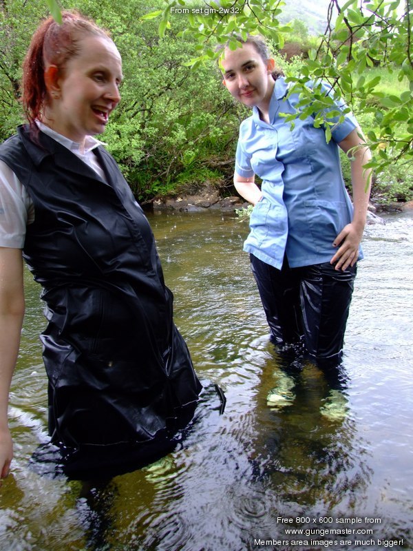 Dressed for pleasure in uniform gear, Lady Rose as a nurse and Lady Amaranth as a sports official, the two girls take to the deeping pool, wading, and in Lady Rose's case, jumping, into the water. Once waist deep they take turns to splash each other, Lady Amaranth in particular getting totally soaked! Rose's drenching comes soon after, and then they play in the water for a while, paddling, swimming, larking about, all in their totally drenched uniforms.