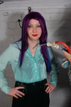 In this case, Prudence the Housekeeper has come up with a rather fetching ensemble in shades of green, which she proposes to wear instead of her usual shiny blue and black uniform, when her day calls for her to spend significant time outdoors, for example at her ladyship's annual garden party, or the yearly local girls' mud-wrestling tournament, both of which are held in the Hall's grounds, and at both of which Prudence usually finds herself pitched into a vat of gunge, in full uniform, at least once.