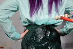 As regular visitors know only too well, any visit to her ladyship's remote and rambling manor house is liable to involve at the very least a thorough soaking or two. The hall servants go about their work in the full knowledhge that they can expect at least a couple of fully clothed drenchings a week, and indeed are provided with plentyful spare uniforms, and spare time in their working days, to allow for drying off and changing time. During the heat of the high summer months it's common, and indeed encuraged, for drenched retainers to simply carry on with their work in their wet clothes. So of course it is very important that any new uniform anyone wishes to wear is thoroughly tested for suitability to be worn soaking wet.