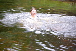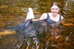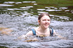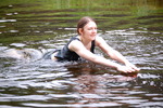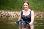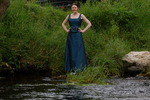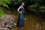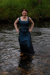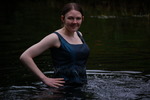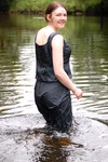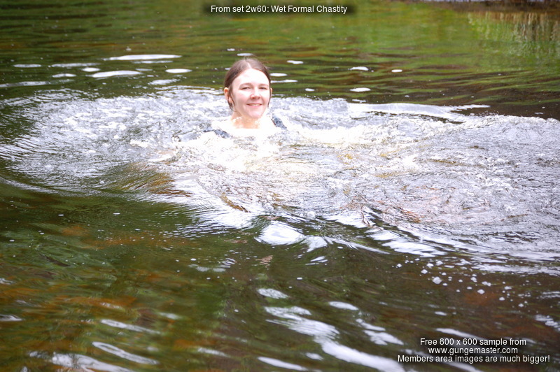 Chastity swaps her usual working gear for a beautiful sea-green formal outfit, floor-length skirt and matching sleeveless top, and then goes for a lovely swim in one of the deep pools of the river.