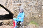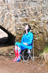 The reason there is some dampness on Maude's uniform before the pouring starts is that she helped to fill the buckets for her own drenching, and in the process almost fell in the river before we could start the process! We may possibly have to give her another bucketing for that in the future. :)