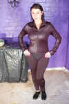 Lucinda is dressed for exercise, wearing a black swimsuit over tight black womens running trousers, with a thin jacket and black plimsolls, and is heading out for a run round the grounds, when she's waylaid by the dungeon stairs by Evelyne, the Hall's cook and mistress of everything and everyone below stairs.