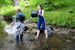 The video for this scene is quite short (that river water was cold!) but focuses entirely on wetlook action, as Chastity dumps bucket after bucket of water over Evelyne and her nice dry (to start with) outfit.