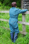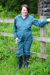 Evelyne the cook dons her green boilersuit and blue wellies, takes a seat on a stool in the river, and then has loads of buckets of water thrown over her by Chastity the Head Gardener, who's dressed in a tight fitting, figure-hugging sporty all-in-one herself.
