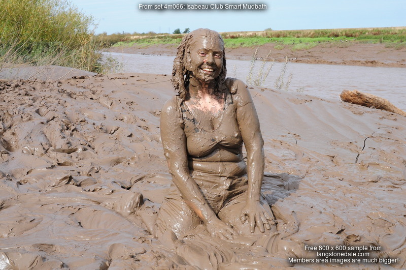 Isabeau loves playing in the mud! Today, she's decided to wear the club equivalent of smart casual into the mudbanks, dressed in a black dance leotard, black PVC jeans, black patent leather boots, and a black suit jacket, she enthusiastically walks in, allows herself to fall over backwards, planting her clean PVC-clad bottom into the mud, and then has loads of fun getting muddier and muddier, sliding, slithering, rolling, until she and her outfit are utterly drenched from head to boots.