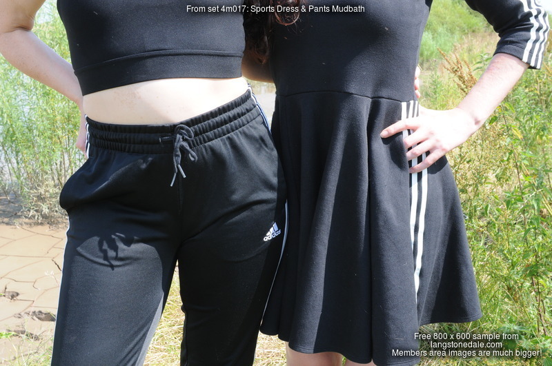 Honeysuckle and Susie wear different sporty styles into the mudbanks