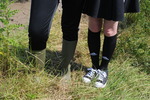 Skirt, tights, and boots vs jeans and wellies, soaking wet!