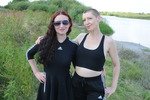 windy day, Aurora and Roxanne, both dressed in Gothic clubwear, meet up