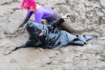 Aurora and Roxanne play in very sticky mud in their best clubwear
