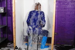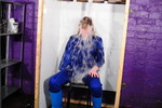 In this scene Miss Abigail gets well dripped on, and then totally drenched three times, and soaps herself up with lashings of shampoo between the first and second, and second and third, delugings. After the first few drips she gets up to put a tray on the seat, which she allows to catch the drips for a while before sitting back down again, soaking her bottom. She's wearing her boilersuit commando, no underwear, so you know she's feeling every drip and squelch. After the main drenchings she stands up and stretches to put the tank plug back in so it can start refilling again, we get nice views of the tight-fitting, soaking wet suit hugging her bottom each time she does this. As well as soaking up her suit she also gives herself a thorough hairwash, using the following deluge to rinse her hair clean again.